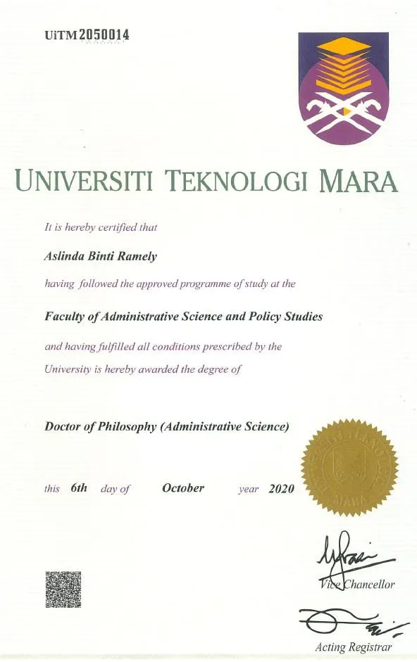 - Doctor of Philosophy in Administrative Science (UiTM2050014)